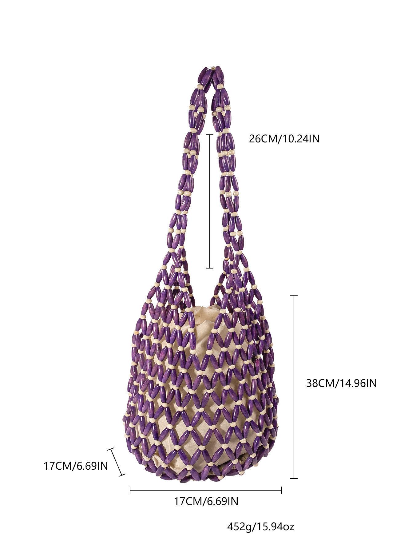 Summer All Matching Special Interest Design Handmade Beaded Weaving Hollow Out Cutout Beach Bag