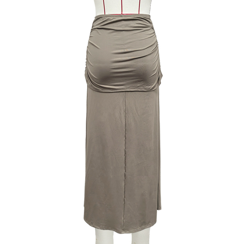Summer Sexy Hip Elegant Slim Pleated Faux Two Piece Skirt