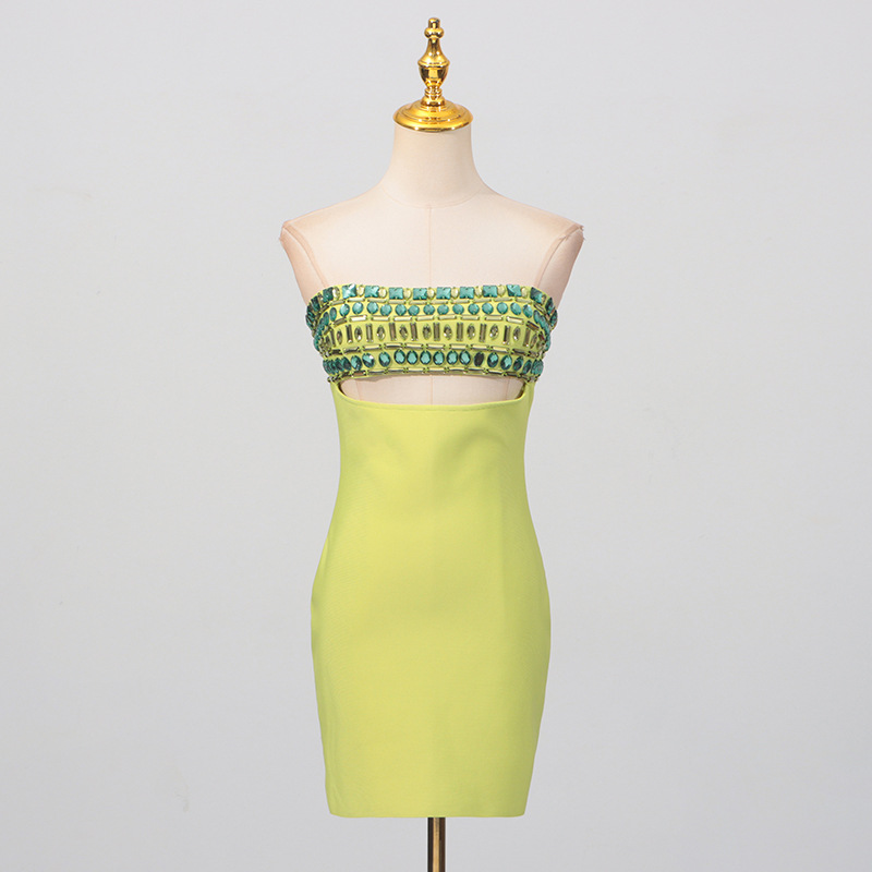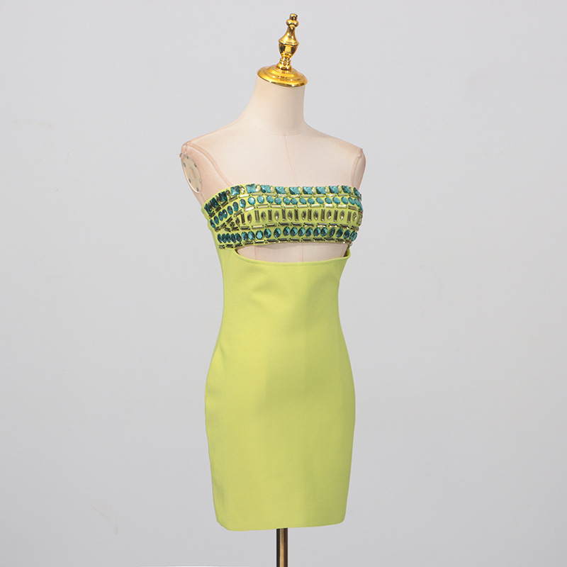 Sexy Sexy Hip Dress Diamond Stitching Design Hollow Out Cutout Solid Color Dress Women Summer