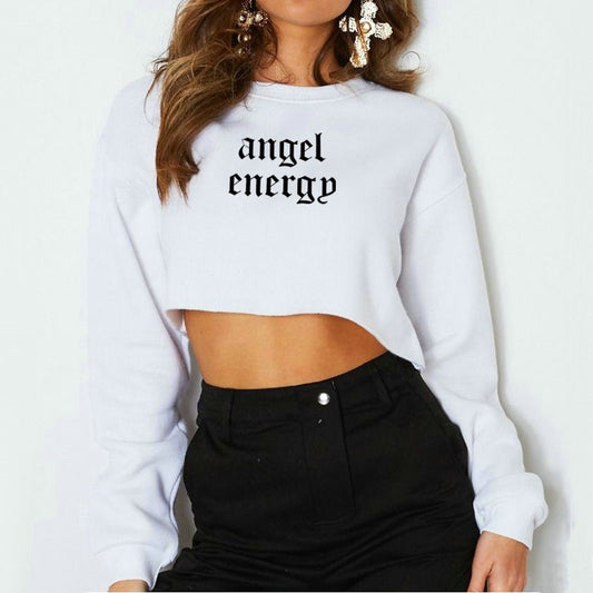 Women Clothing Angel Letter Graphic Printed Long Sleeve Short Women Sweatshirt