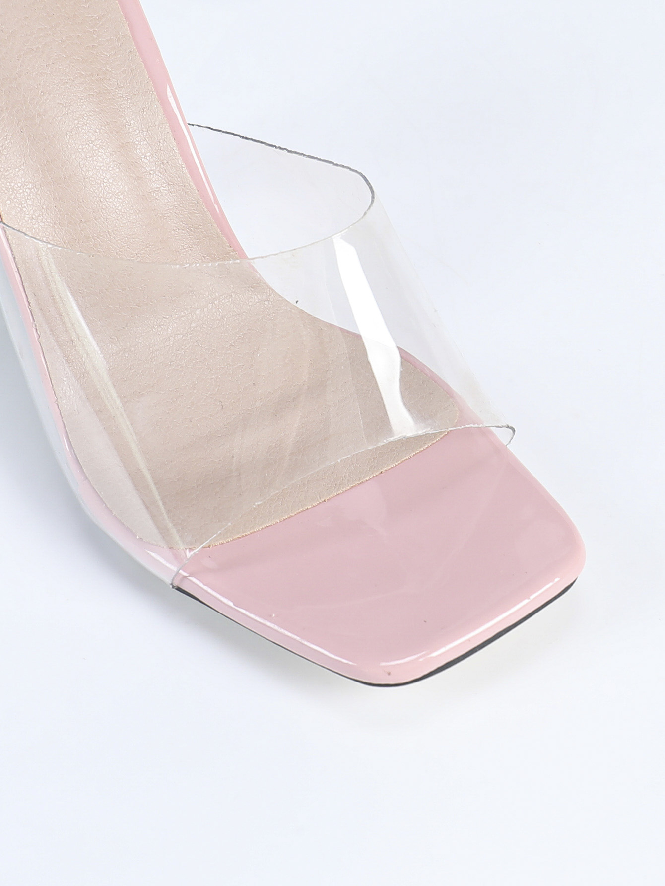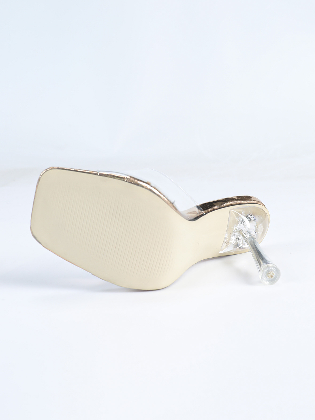 Cocktail Silicon Sealant Crystal Stiletto High Heel Women Square Toe Word with Transparent Sexy Stiletto Women Shoes