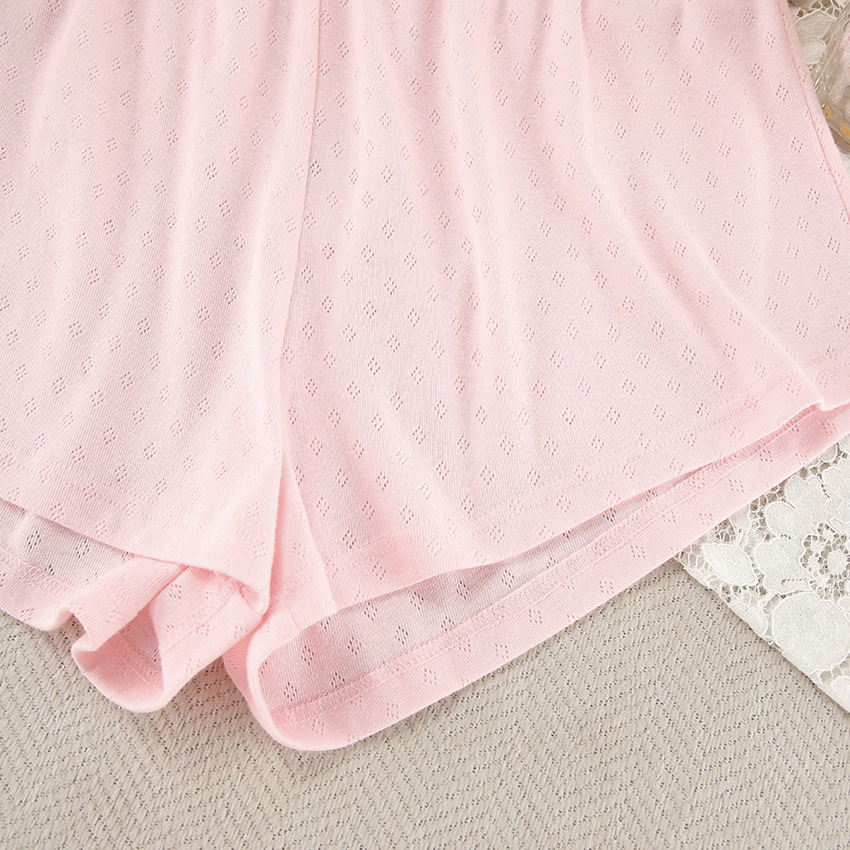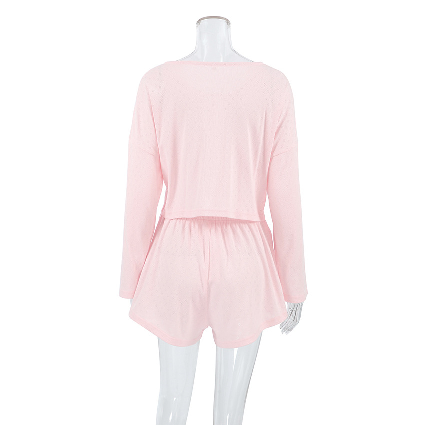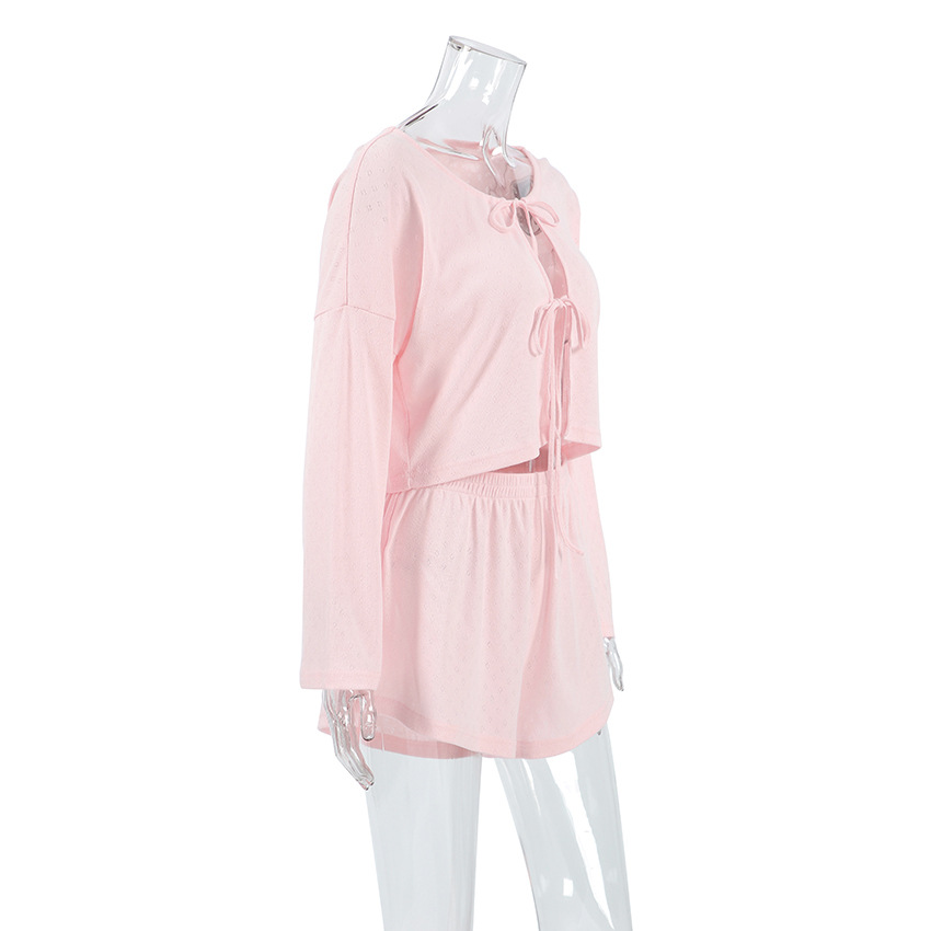 Loose Lace up Knitted Jacquard Home Wear Autumn Long Sleeve Shorts Comfort Casual Pajamas for Women
