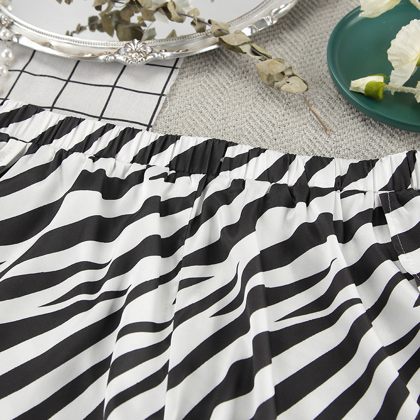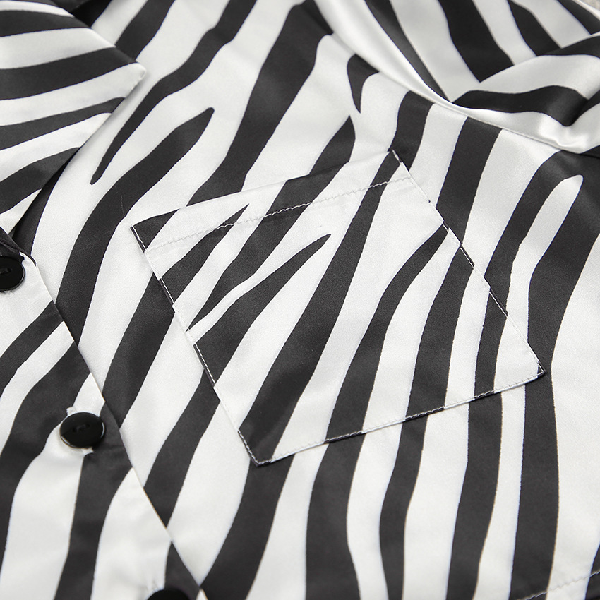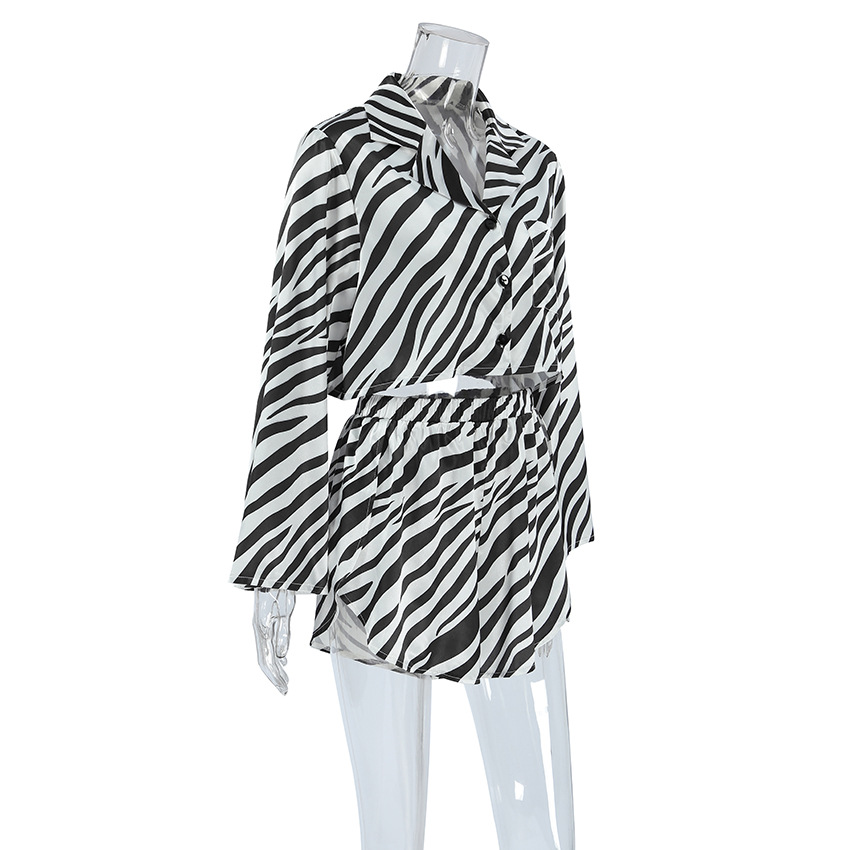 Satin Striped Summer Pajamas Long Sleeves Cropped Cardigan Shorts Two Piece Set Ladies Homewear