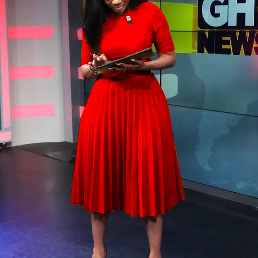 Women Clothing Tie Color Matching Pleated Dress Elegant Plus Size Dress