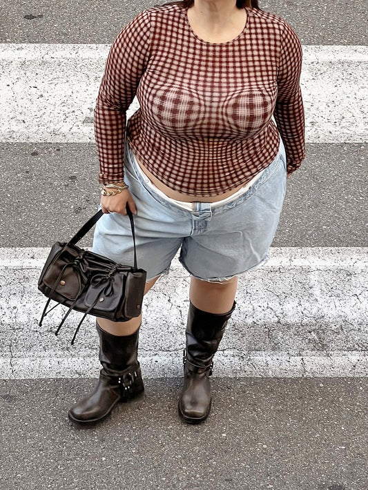 Women Clothing Best Casual round Neck Plaid Printed plus Size Top