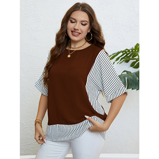 Summer round Neck Stitching Faux Two Piece Plus Size Women Top
