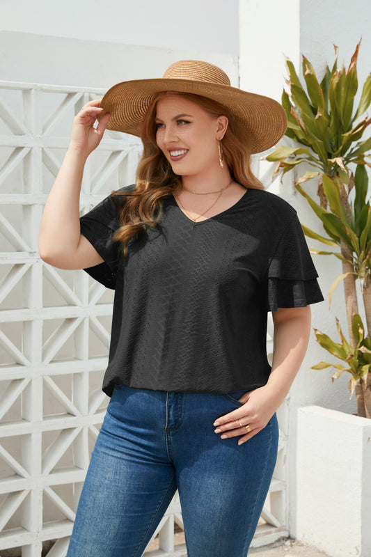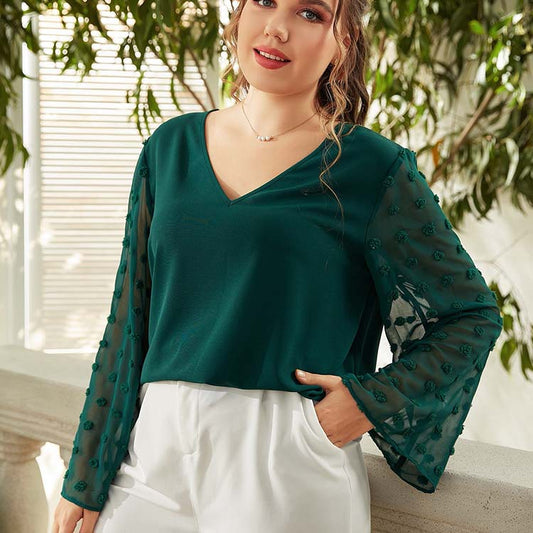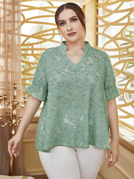 Plus Size Women Top Ruffle Sleeve Office Loose Women Top