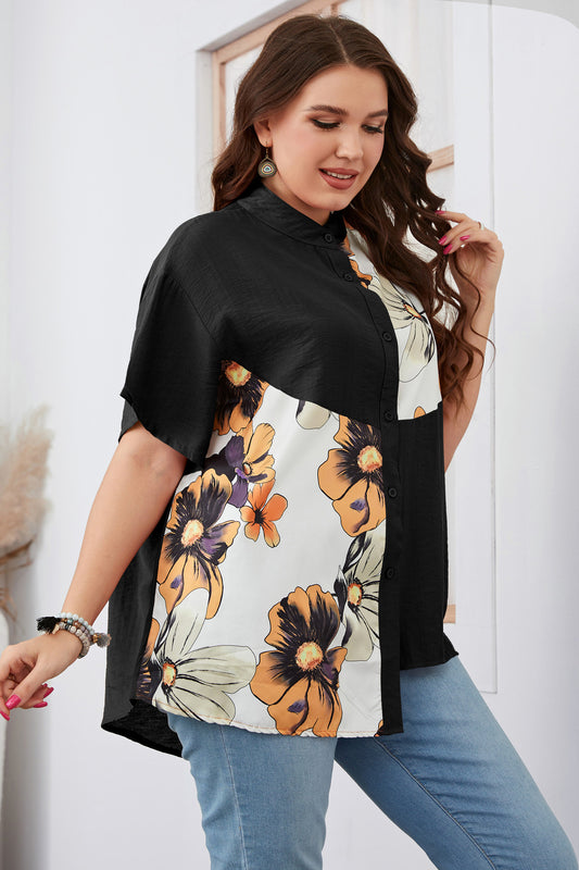 Plus Size Women Slimming Loose Printed Short-Sleeved Top Women Clothing