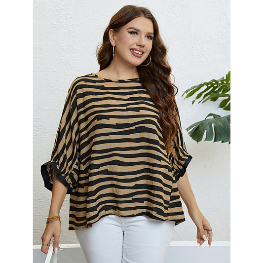 Summer Zebra Pattern 3/4 Sleeve Elegant Plus Size Top