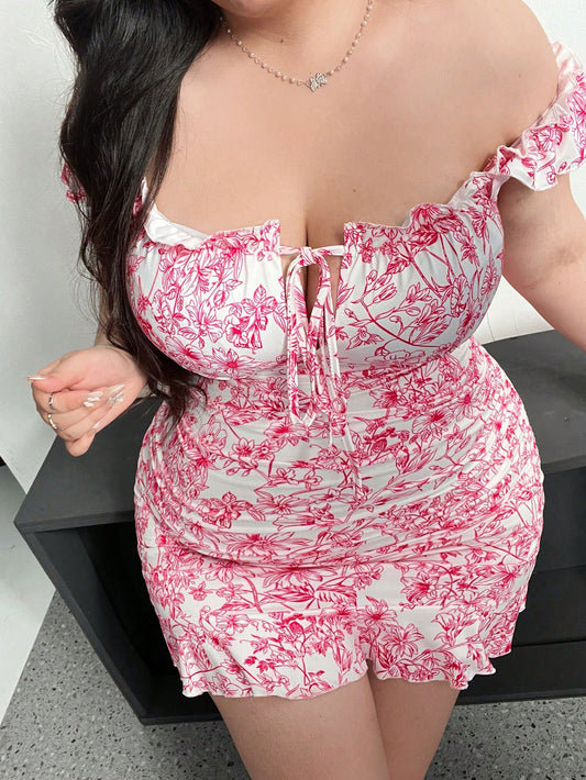 Plus Size Women Clothes Sexy Print Dress Spring Summer Tube Top Hip Dress