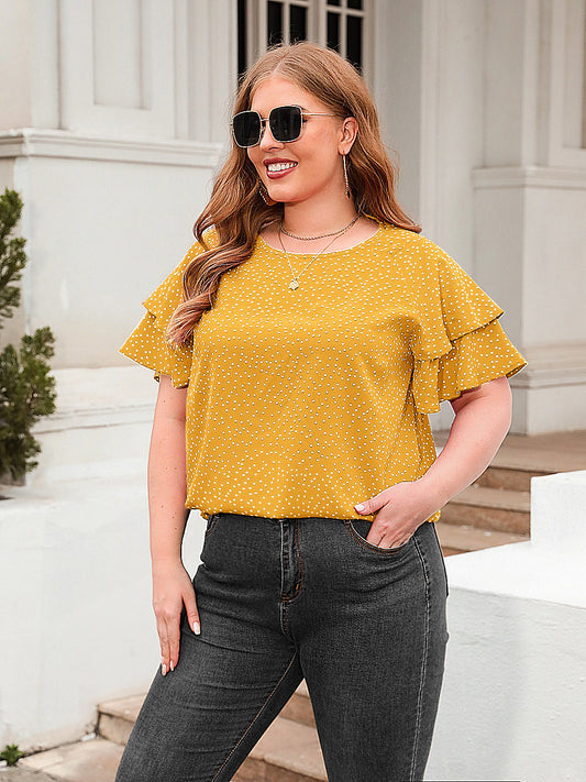 plus Size Polka Dot Loose Fitting Casual T shirt plus Size Women round Neck Short Sleeve Office Top