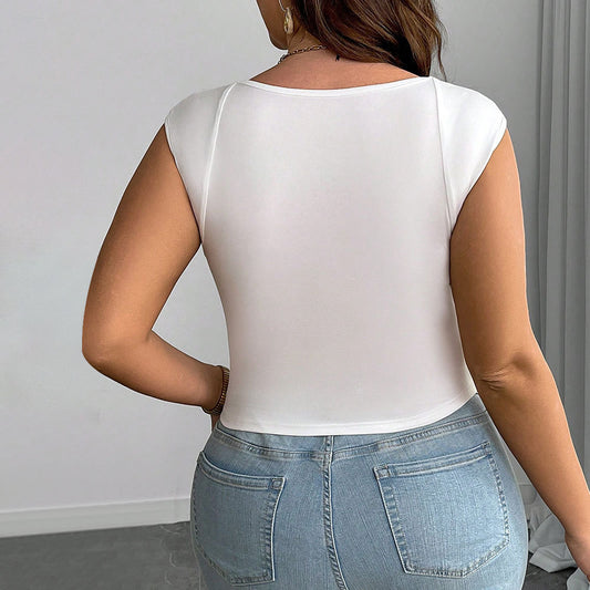 Plus Size Women Elegant T shirt Summer Square Collar Slim Fit Slimming Top