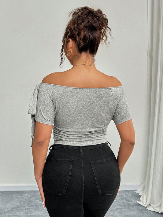 Plus Size Women Summer Sexy off Shoulder T shirt Tube Top Wooden Ear off Shoulder Top