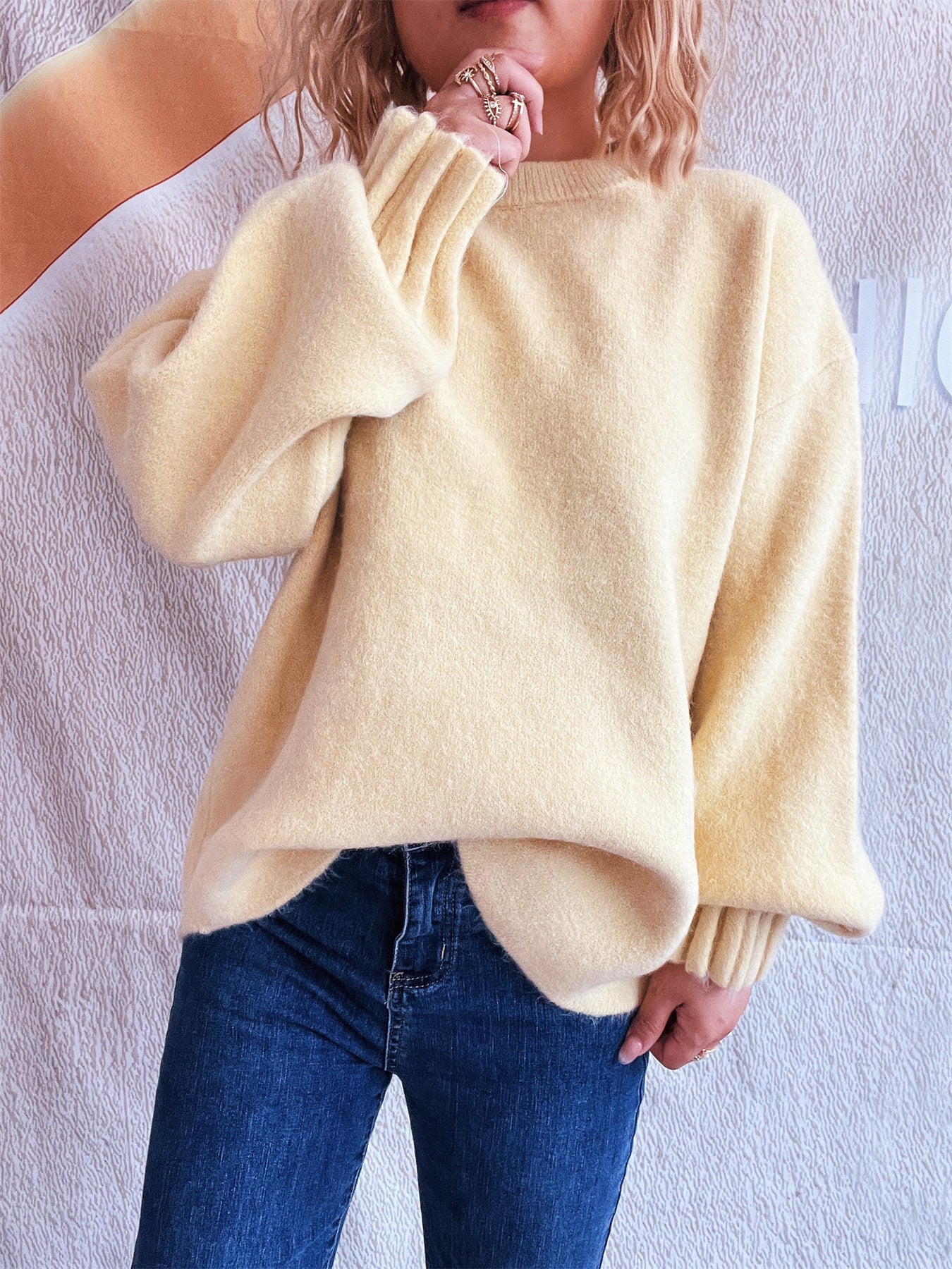 Solid Color Casual Loose Knitted Top Street Women Wear Sweater