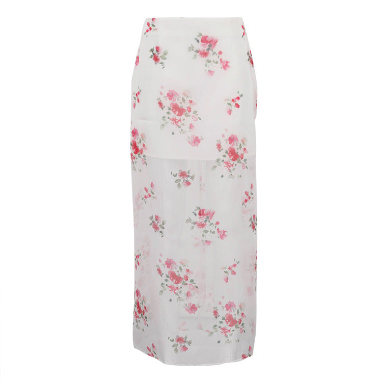 Arrival Digital Printing See through High Waist Slit Skirt Women Double Layer Office All Matching Hip Skirt