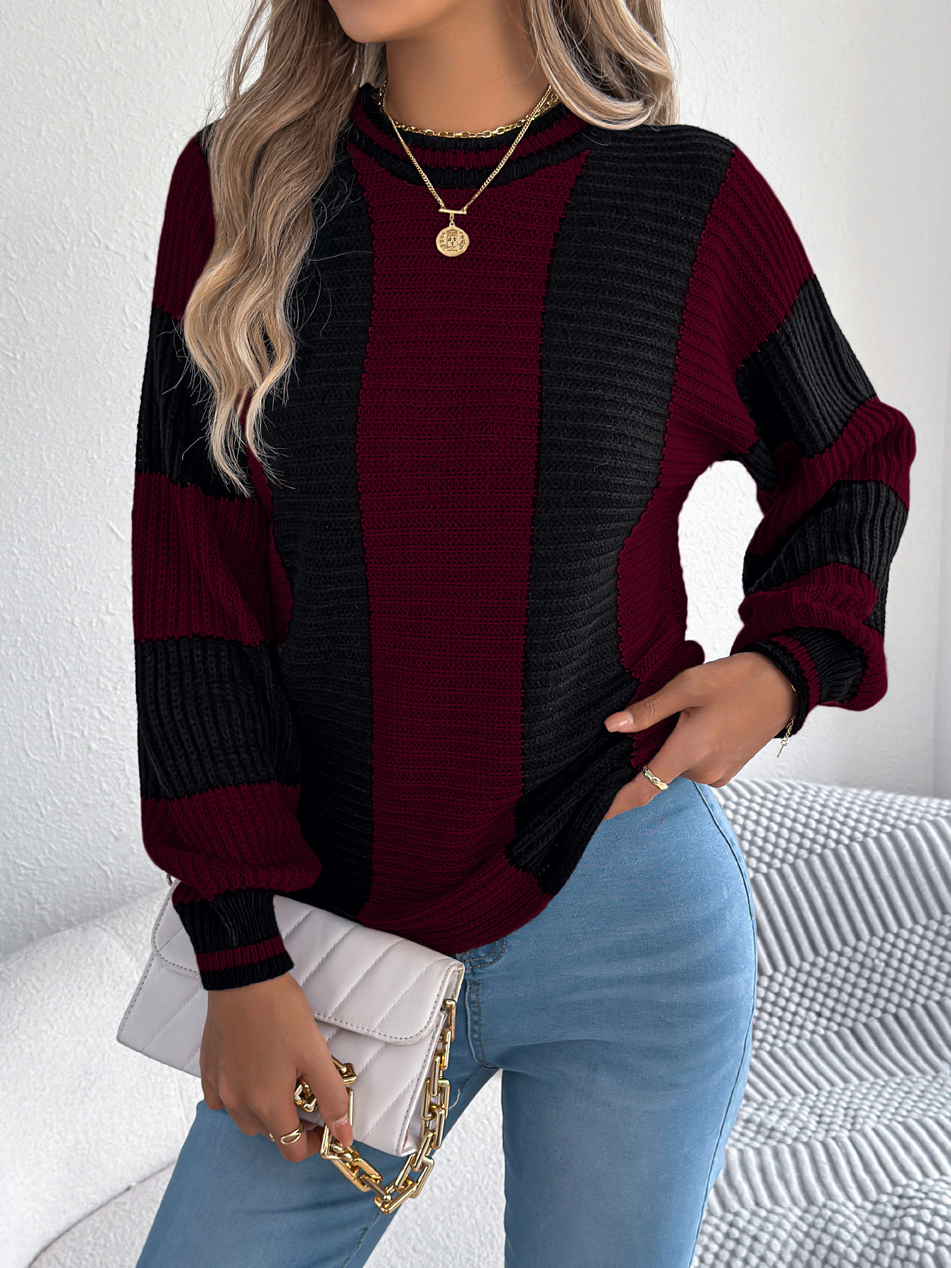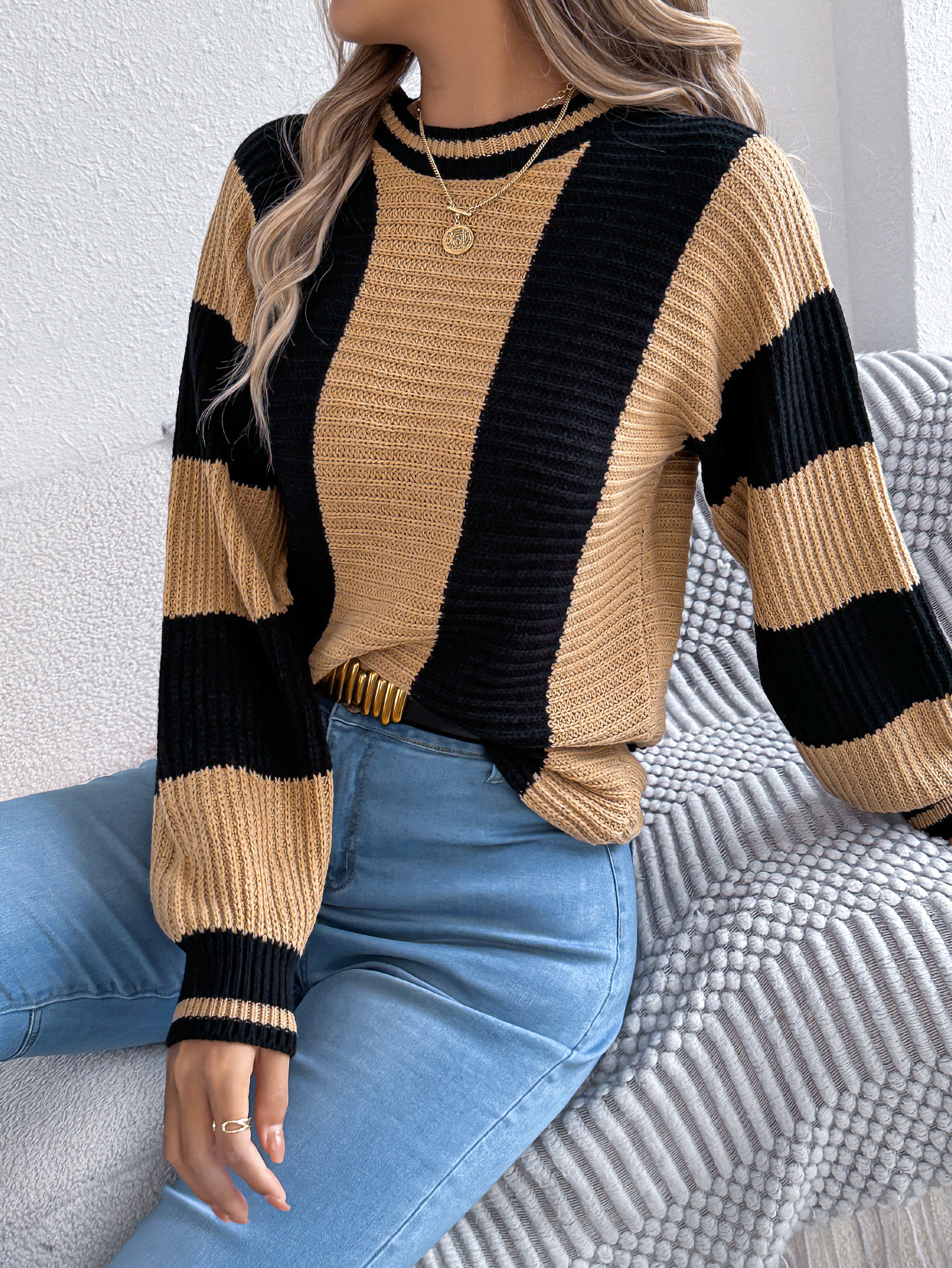 Autumn Winter Casual Contrast Color Striped...