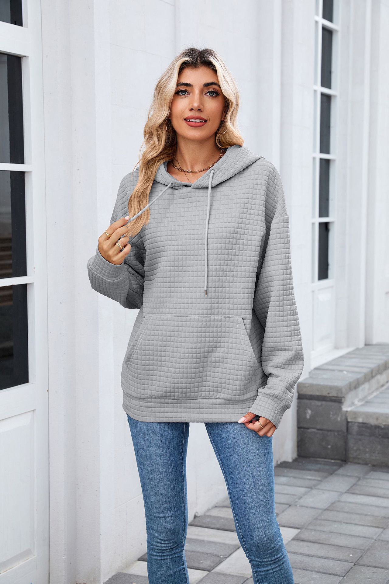 Autumn Winter Solid Color Hooded Pocket...