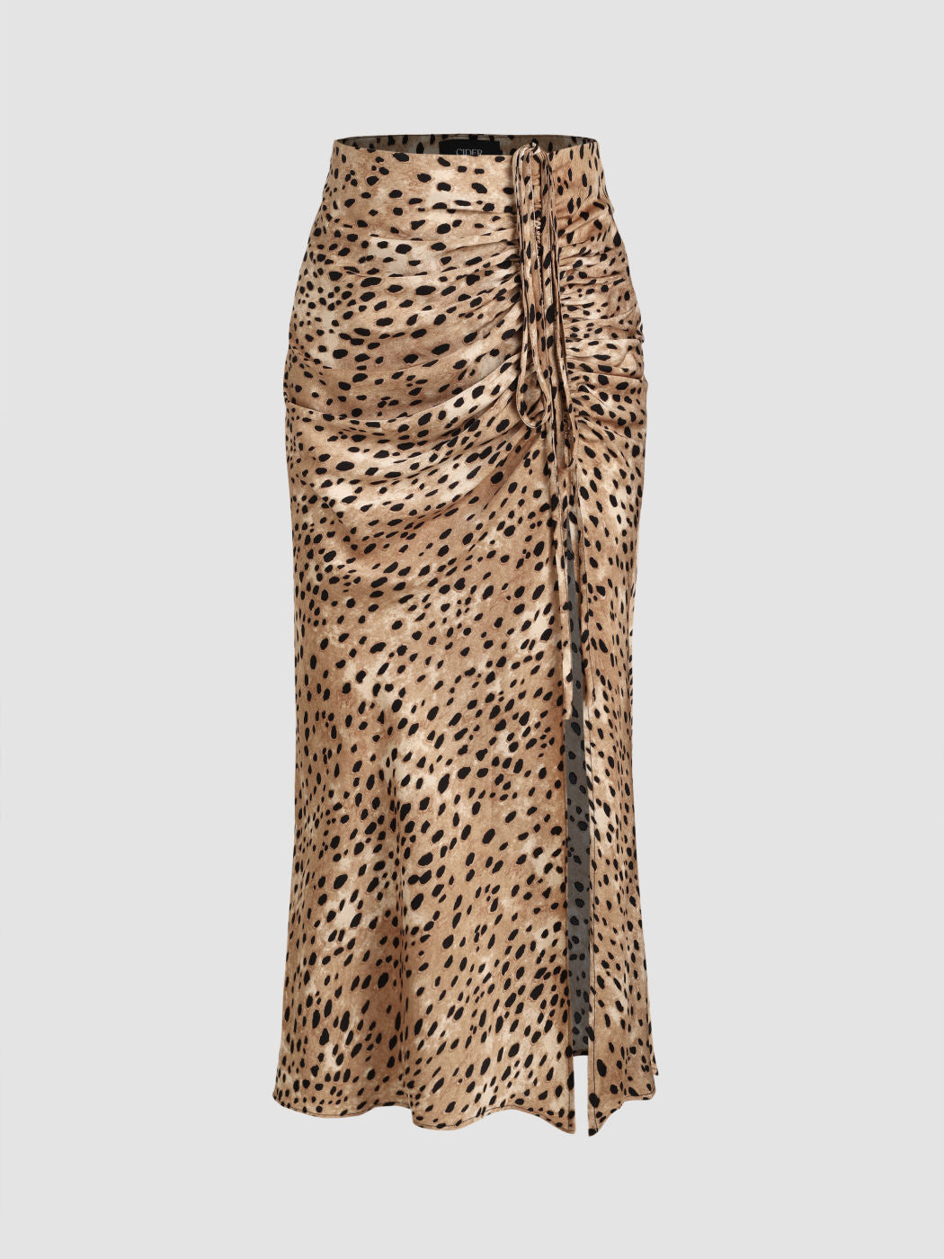 LEOPARD PRINT DRAWSTRING SPLIT MAXI SKIRT