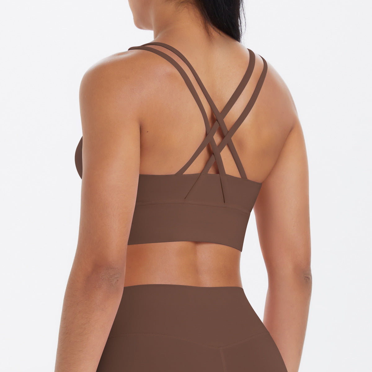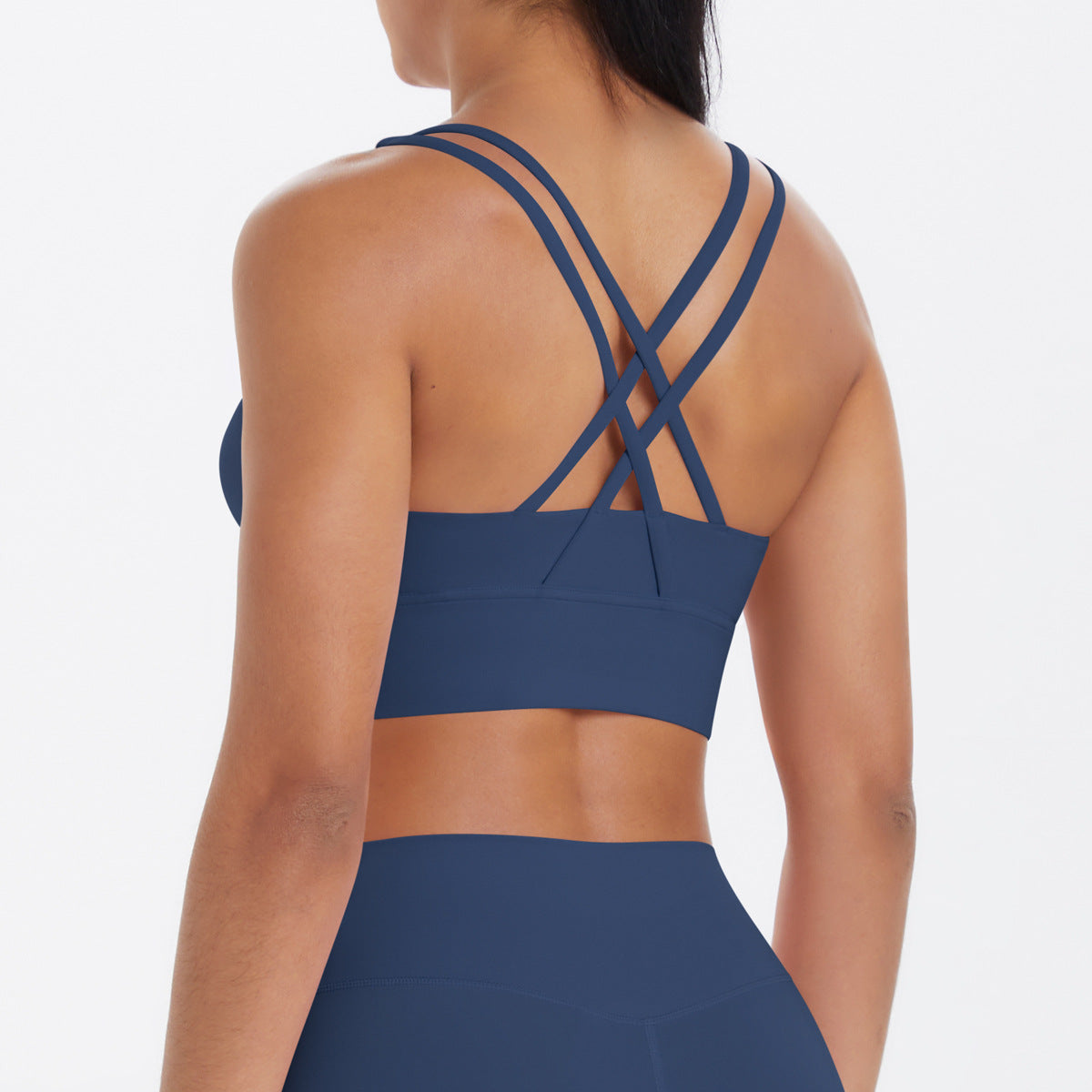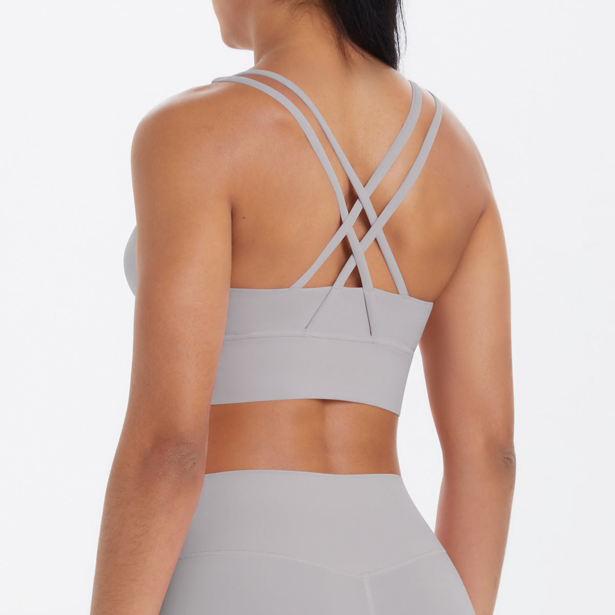 Nude Feel Solid Color Sports Underwear Push up Sexy Double Shoulder Strap Beauty Back Yoga Bra Running Workout Vest Women