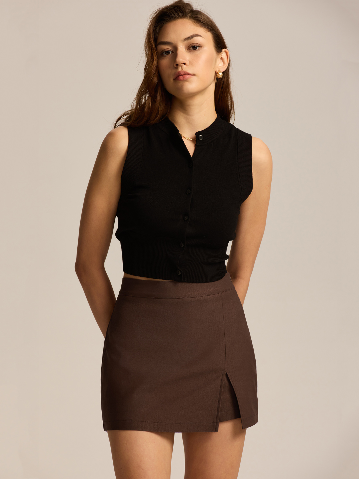 Women Clothing High Waist Slit Pantskirt...